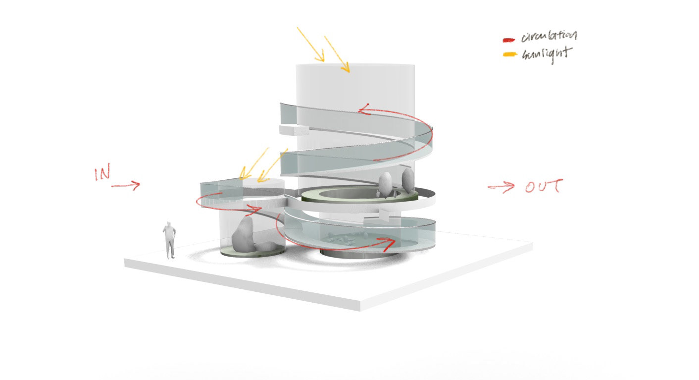 In this project, I paid attention to translating the shape logic based on the visual perspective to other materials such as texture, hearing, space from the height of the ceiling, and most importantly circulation according to the retention of information and pattern created by a user. Then, match it with the client profile, precedent research, and site analysis to form the shape of the idea.